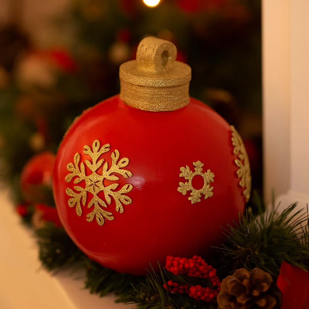 Apportez une note festive et élégante à votre intérieur avec cette magnifique boule décorative rouge ornée de motifs dorés scintillants. Véritable symbole des fêtes, elle attire le regard grâce à sa finition brillante et ses détails en relief, rappelant les décorations classiques des Noëls d’antan. Parfaite sur un meuble, une cheminée ou au pied du sapin, elle s’intègre aussi bien dans une ambiance traditionnelle que contemporaine.