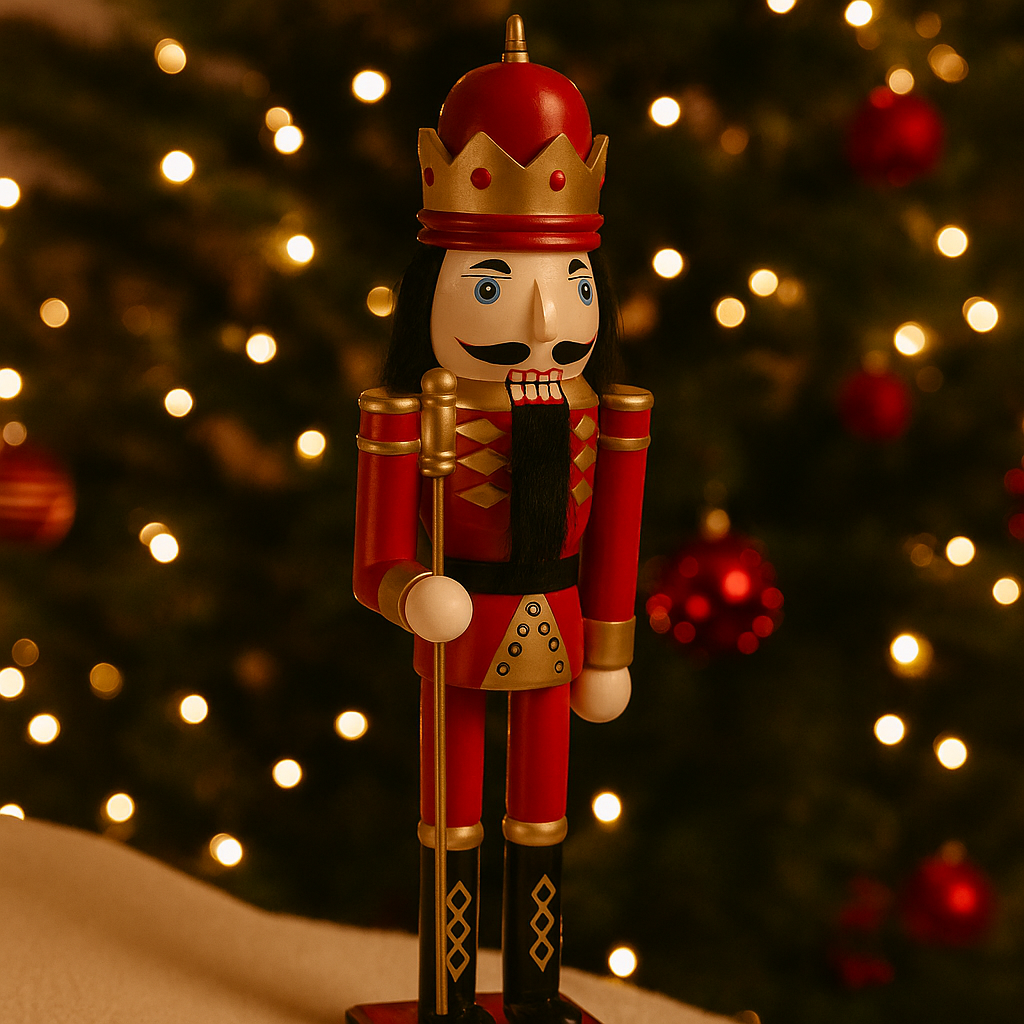 Apportez une touche féérique à votre décoration de Noël avec ce superbe casse-noisette en bois. Haut de 38 cm, il se distingue par sa tenue rouge et or, sa barbe noire et sa couronne royale qui rappellent les traditions de Noël d’antan. Symbole incontournable des fêtes, il se place aussi bien au pied du sapin que sur une cheminée, une console ou une étagère pour créer une ambiance chaleureuse et élégante.