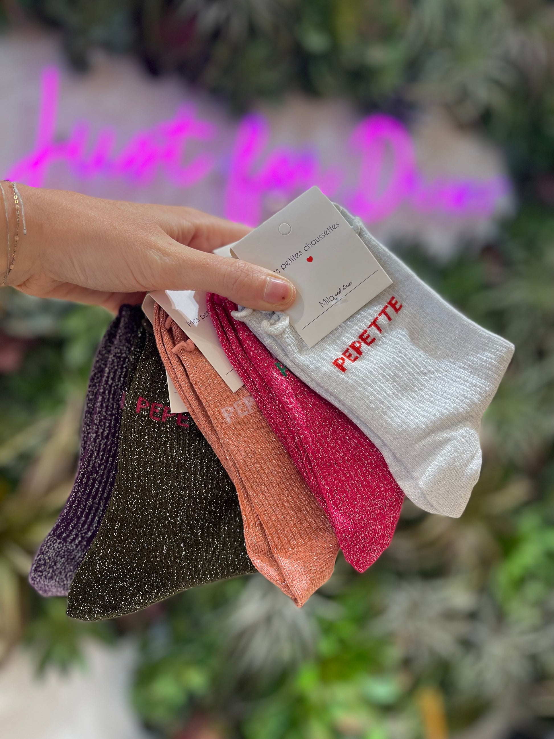 Chaussettes à paillettes – Écriture "PEPETTE"