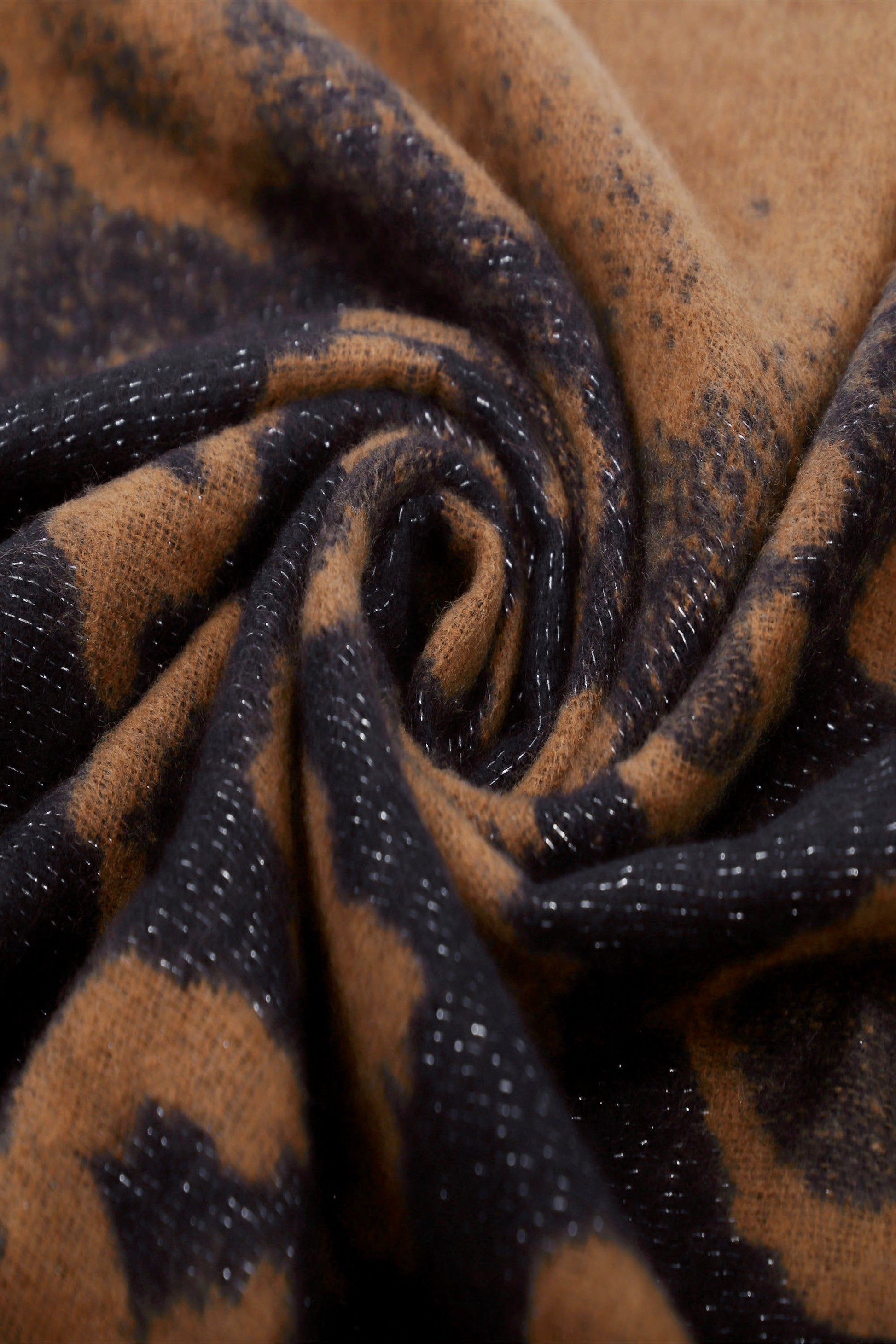 Douce, tendance et ultra-confortable, cette écharpe à imprimé léopard caramel et noir apporte une touche sauvage à toutes vos tenues. Son tissage moelleux et chaud en fait un indispensable des journées fraîches, tout en restant élégante grâce à son motif intemporel et ses finitions à franges.