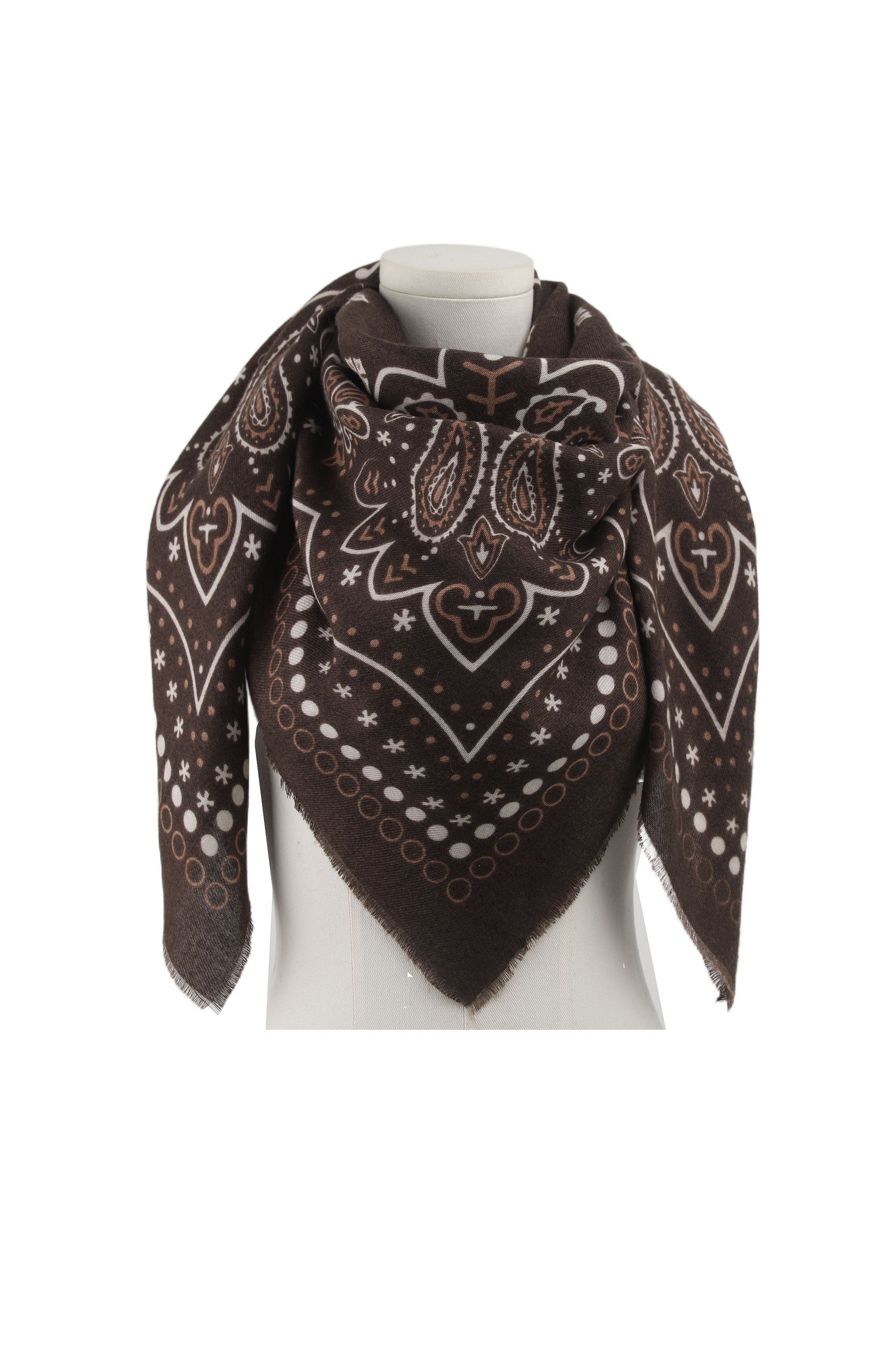 Apportez une touche tendance et chaleureuse à vos tenues avec ce foulard carré inspiré du célèbre motif bandana. Son format généreux permet de le porter de multiples façons : autour du cou, sur les épaules ou même en accessoire dans les cheveux.