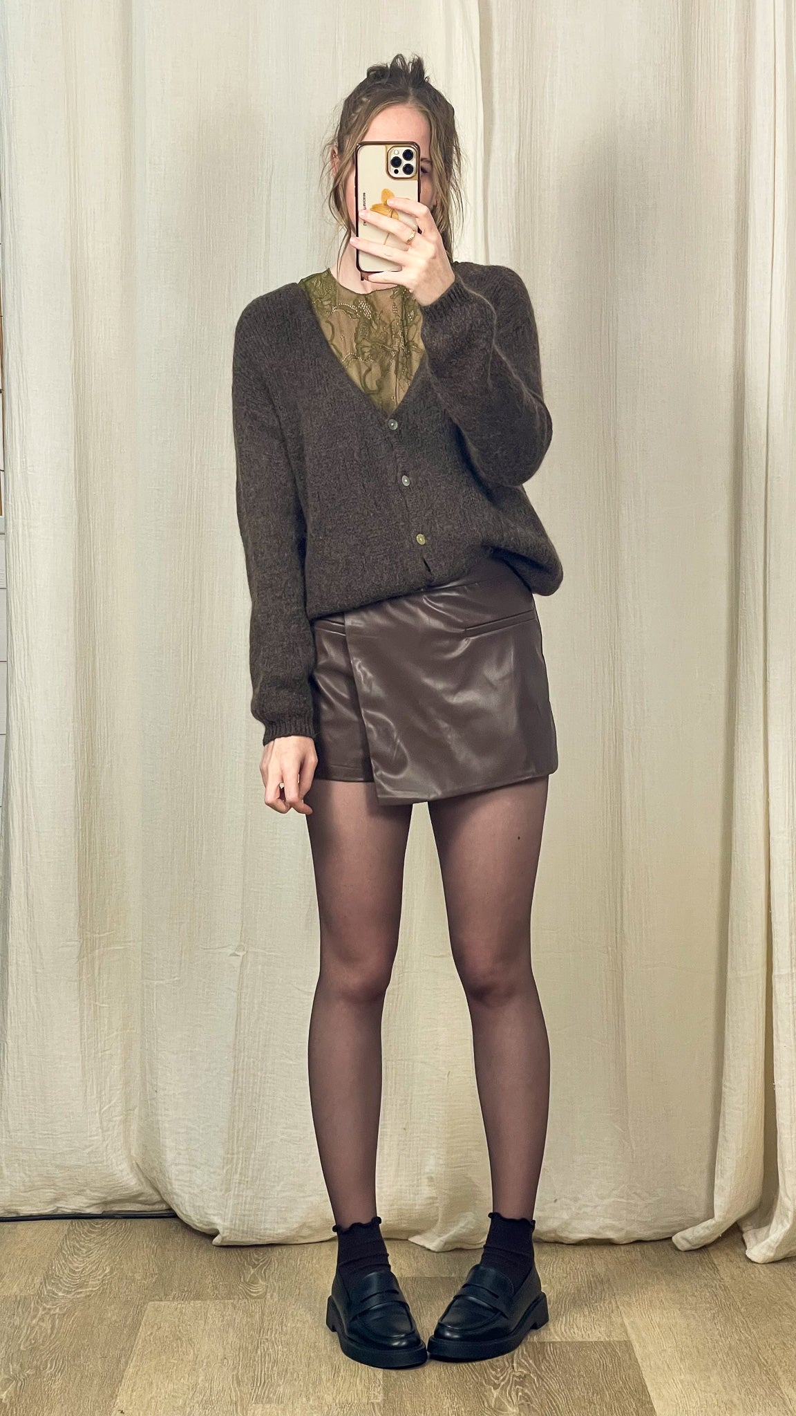 Superposez le Gilet Lola sur un top en dentelle pour jouer la transparence avec élégance, ou sur une chemise pour un look plus casual chic. Il s’accorde parfaitement à une jupe-short en simili ou à un jean taille haute pour un style équilibré entre confort et sophistication.