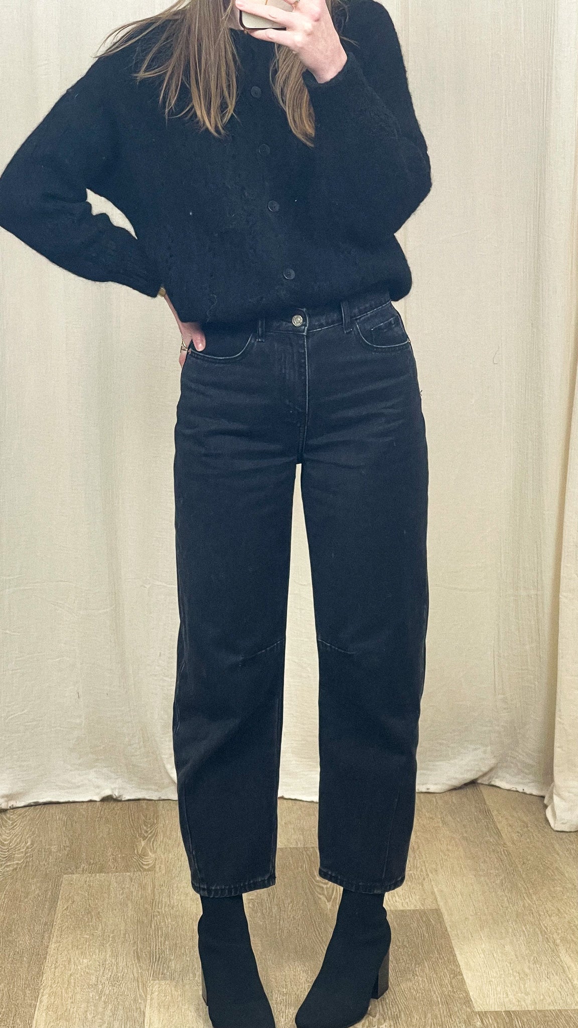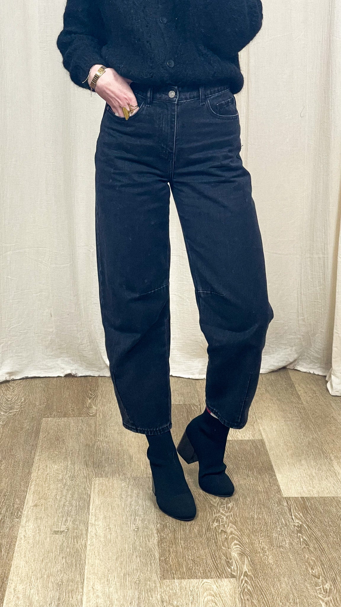 Découvrez le Jean Brandy, un denim gris à la coupe balloon qui revisite les basiques avec style. Taille haute, jambes arrondies et resserrées à la cheville : un équilibre parfait entre confort et allure moderne. Sa teinte gris délavé apporte une touche urbaine chic, facile à associer en toutes saisons.