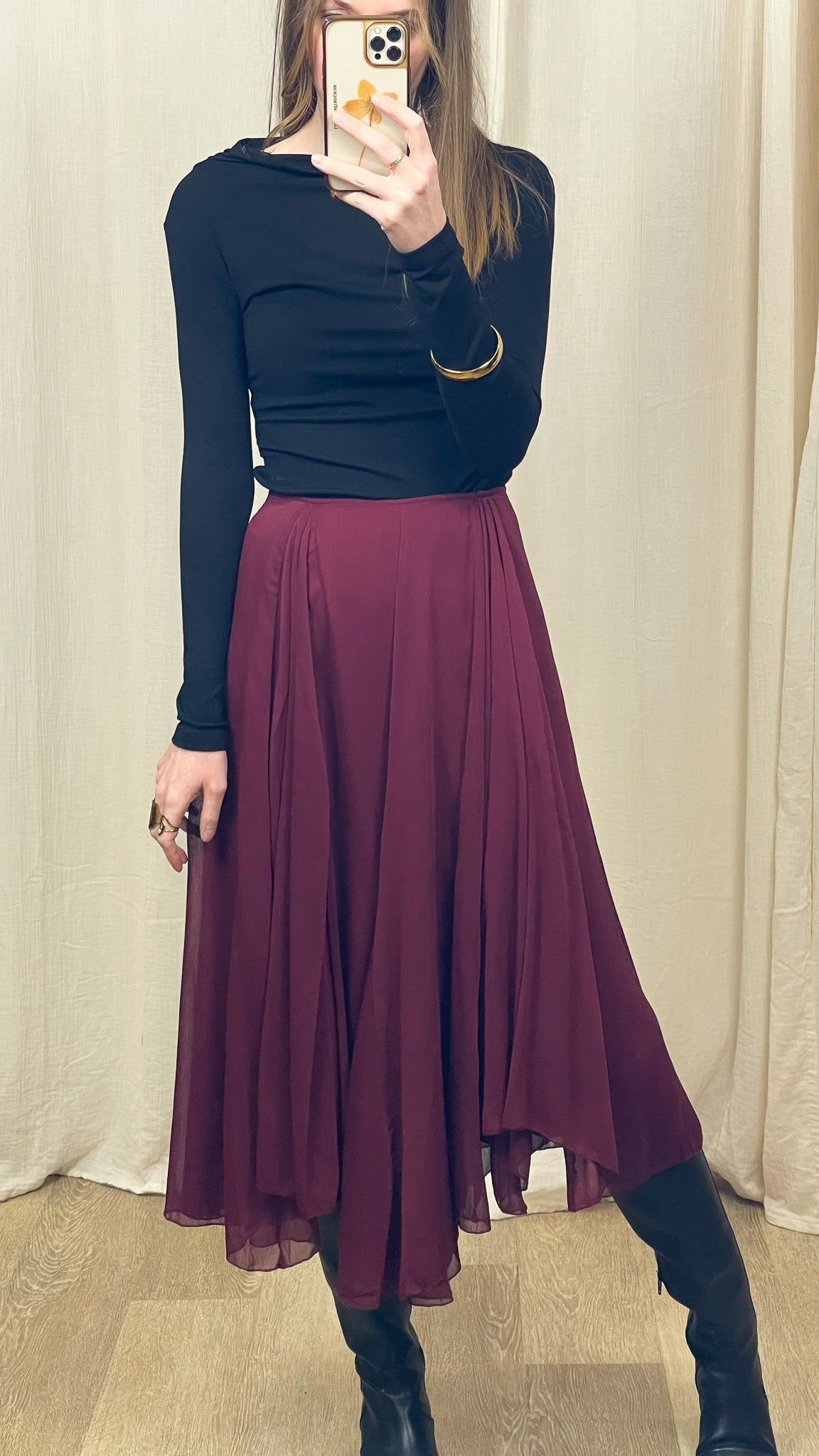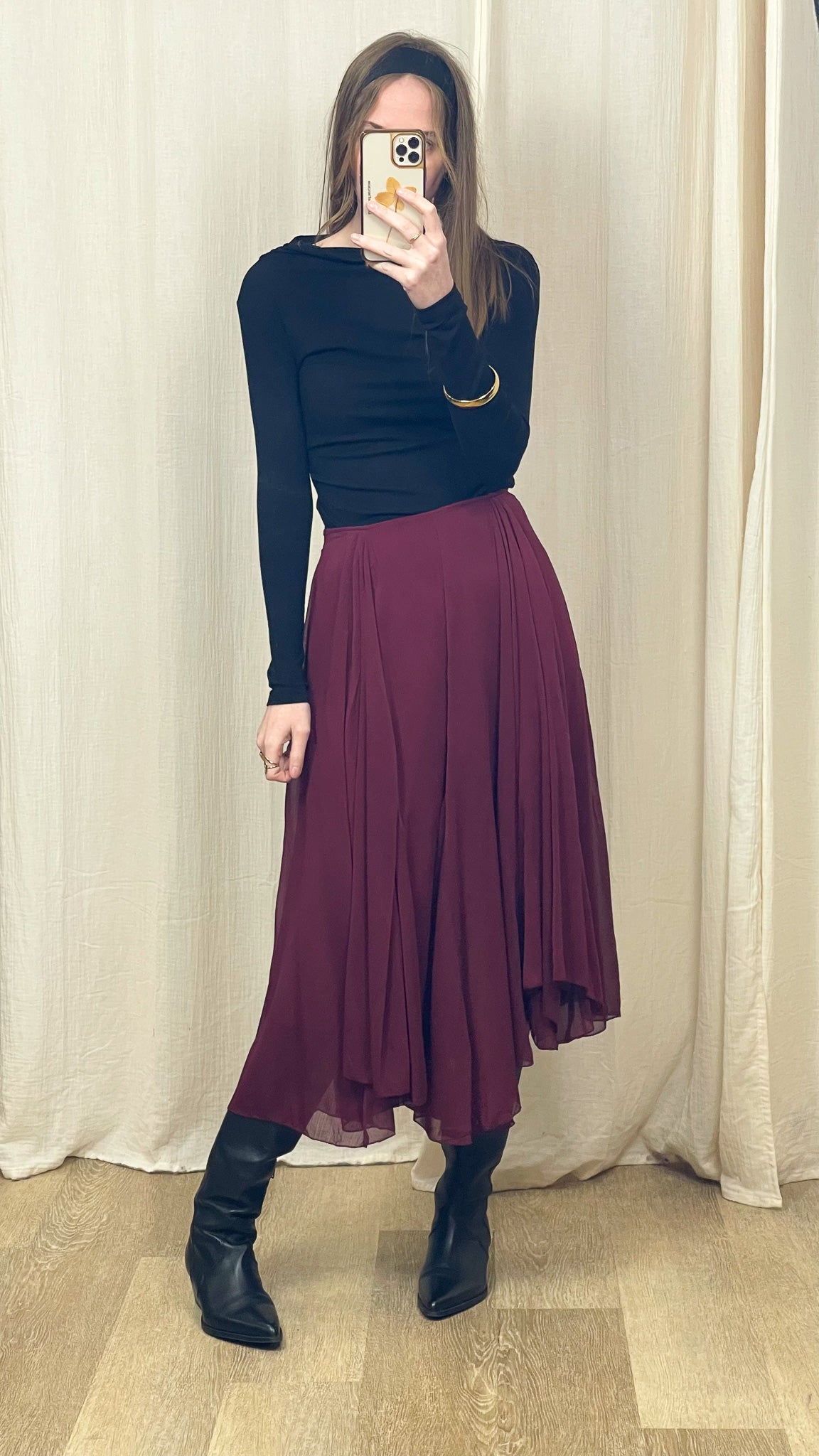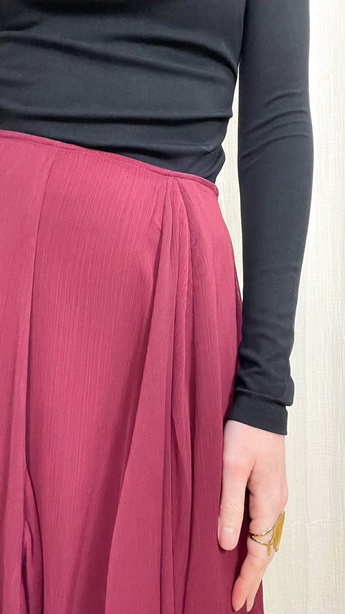 Élégante et aérienne, la Jupe Prune est une pièce féminine et intemporelle qui sublime toutes les silhouettes. Sa coupe longue et fluide offre un tombé impeccable, tandis que sa teinte bordeaux profonde apporte chaleur et caractère à la tenue. Légère et agréable à porter, elle accompagne aussi bien vos looks du quotidien que vos tenues plus habillées.