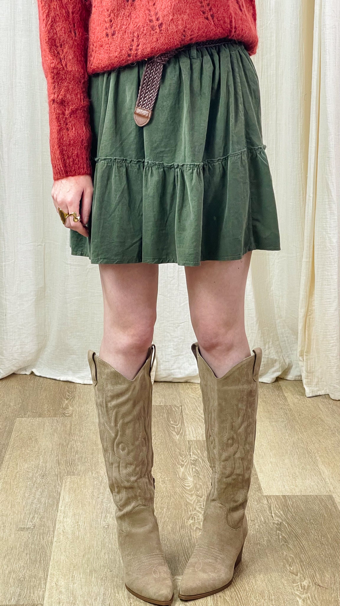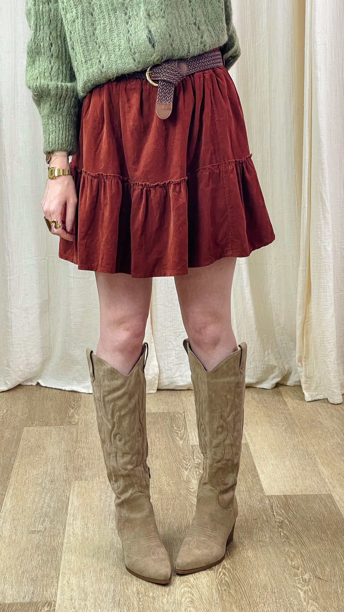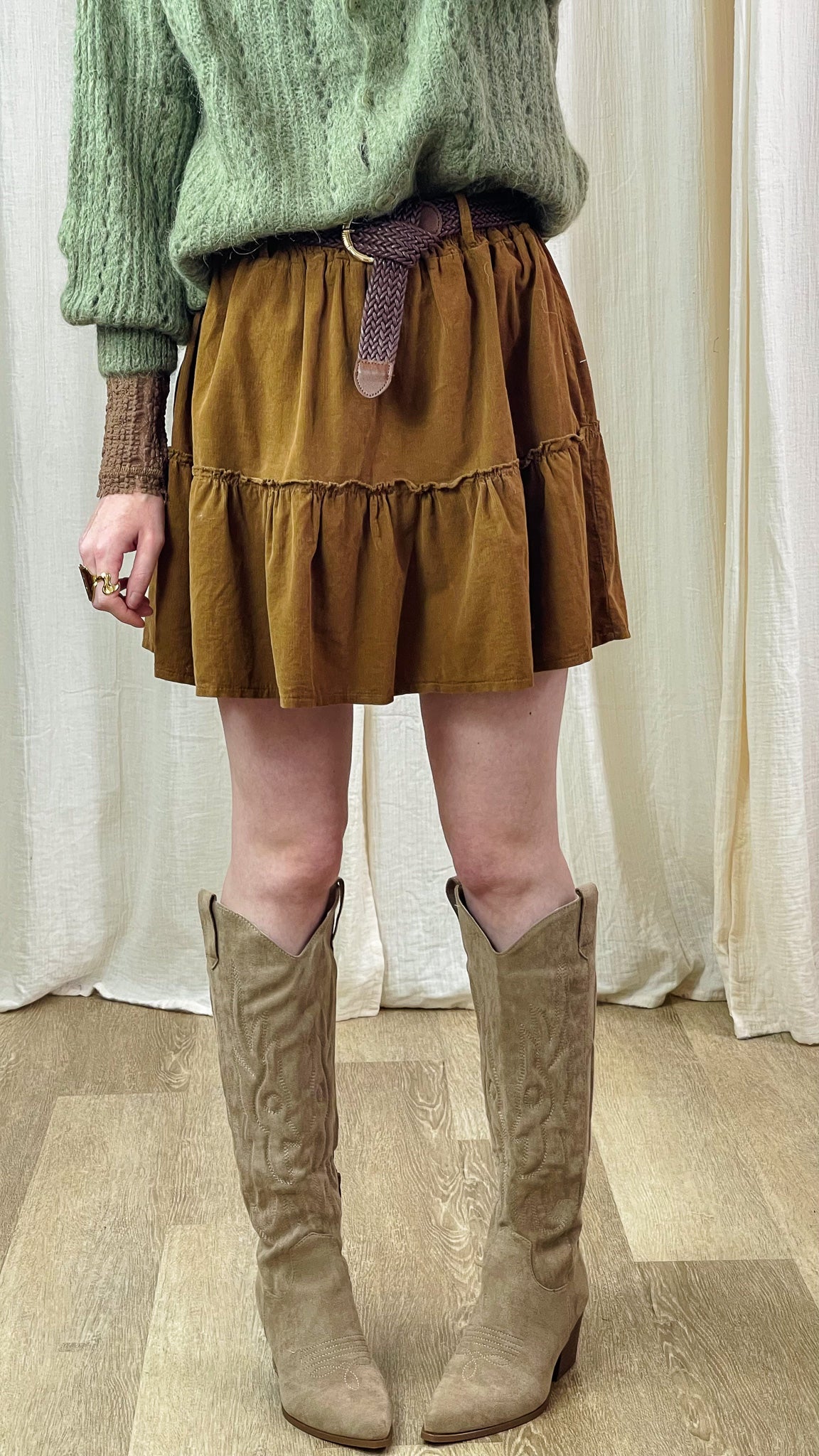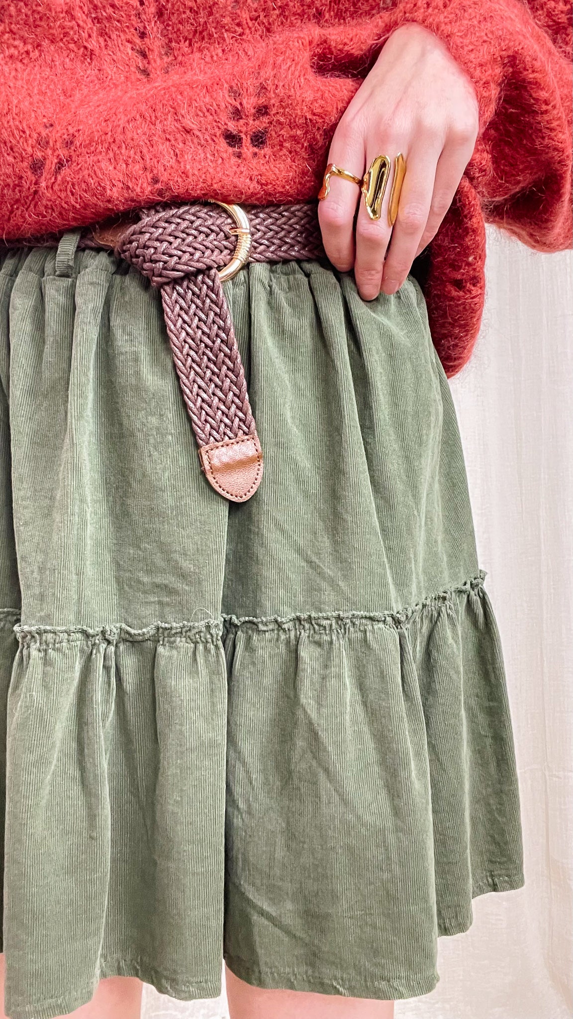 Jupe Sarah – Jupe courte à volants en velours côtelé