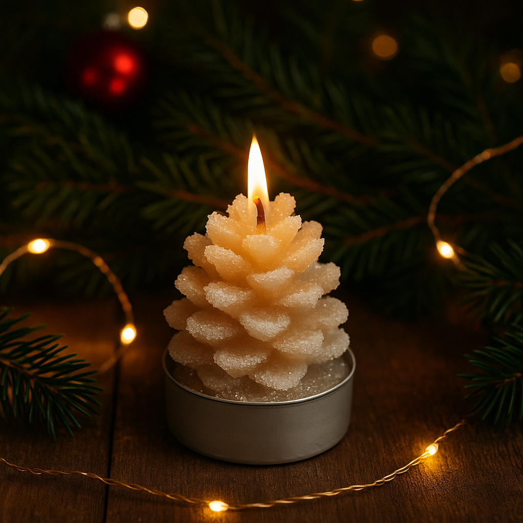 Lot de 4 Bougies Pomme de Pin Enneigée – Décoration de Noël
