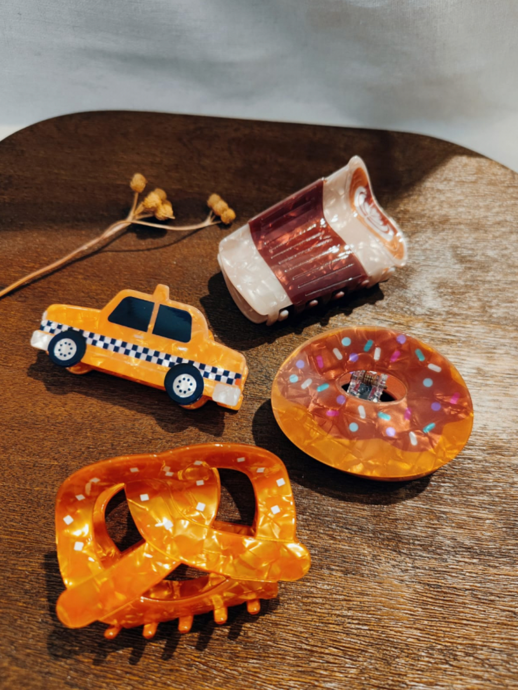 Ces pinces à cheveux apportent une touche totalement décalée et gourmande à vos coiffures du quotidien. Que vous choisissiez le bretzel scintillant, le donut à paillettes, le taxi jaune ou le petit gobelet café, chaque modèle ajoute une note de fantaisie irrésistible.