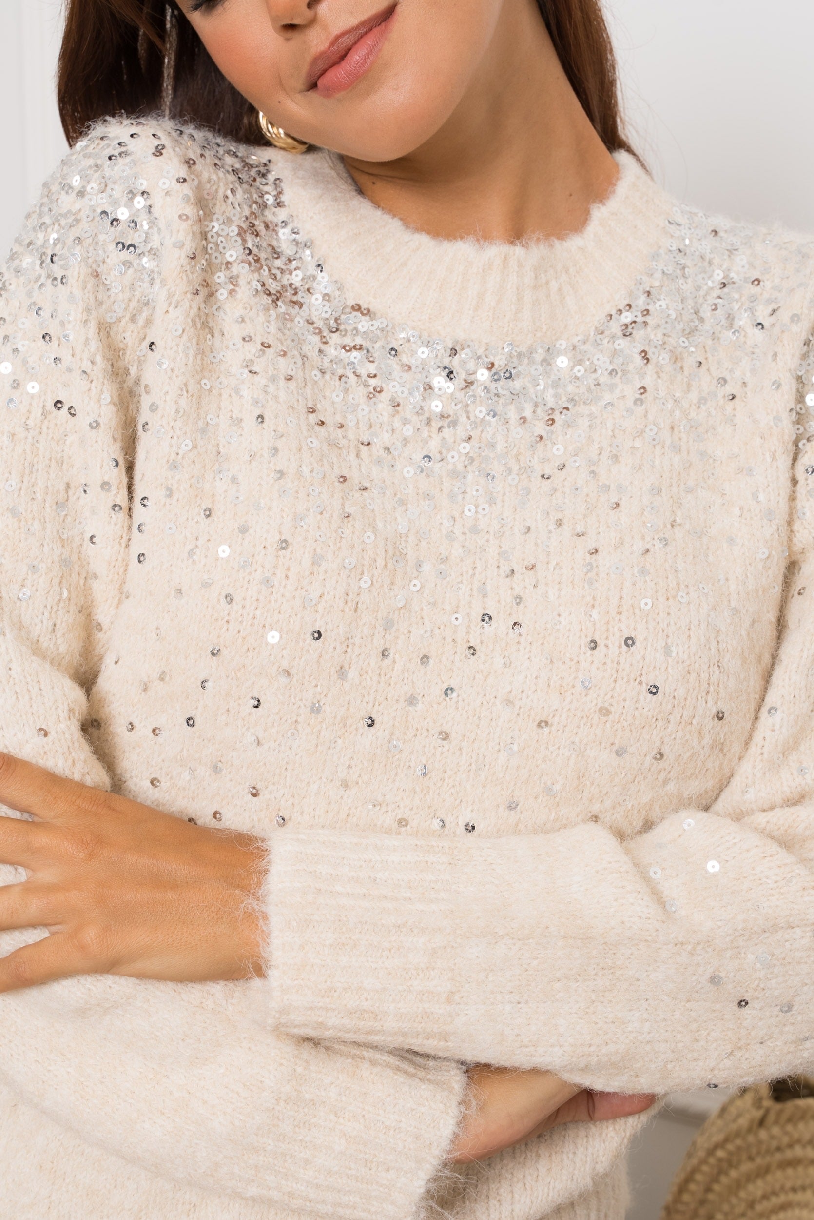 Détails de sequins scintillants sur le haut du pull