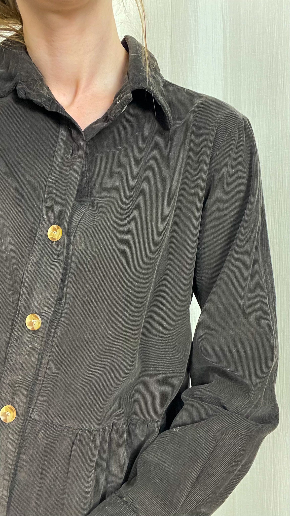 La Robe Clara revisite la robe chemise dans une version douce et élégante en velours côtelé. Sa coupe ample et fluide apporte un tombé parfait, tandis que ses boutons dorés et son col classique lui donnent une touche vintage irrésistible. Une pièce confortable et chic à porter aussi bien au quotidien que pour une sortie automnale.